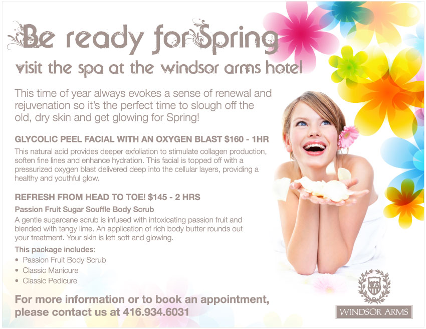 Toronto Hotel, the Windsor Arms – were looking for some eye catching graphic design for their Spring spa promotion.