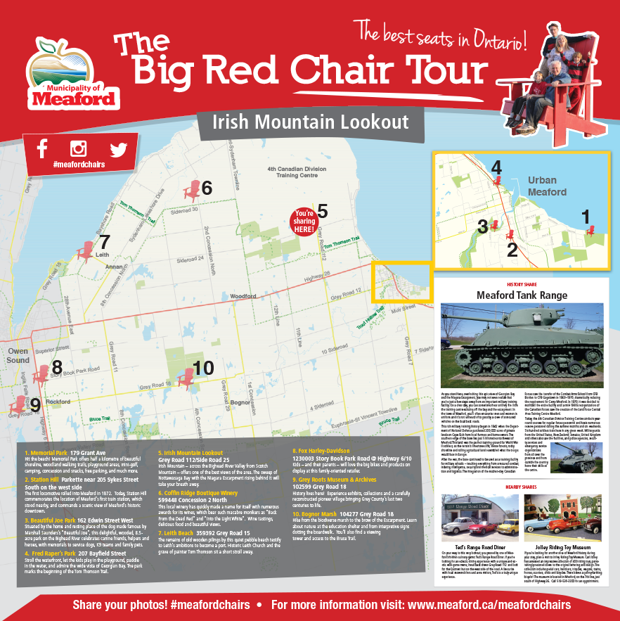 Working with Meaford’s Vic Michener of myFavouriteMarketer and Allison Kennedy Davies, Enclave Design designed all visual elements for this project. This included large 3 foot x 3 foot panels for each chair and a 3 fold dle brochure promoting the Tour – which was distributed to dozens of day-trip locations throughout the region by the Georgian Triangle Tourist Association.